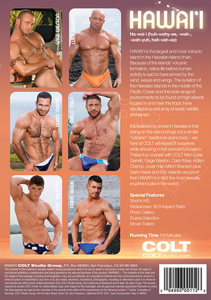 It is believed by ancient Hawaiians that being on the Island brings out a similar volcanic reaction in one’s body – we here at COLT witnessed it ourselves while shooting in this wonderful location. These four scenes with COLT Men Luke Garrett, Gage Weston, Carlo Masi, Adam Champ, cover man Mitch Branson plus Darin Hawk and Eric Valentin are proof that HAWAI’I is in fact the most sexually eruptive locale in the world!