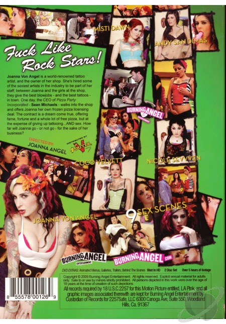 Joanna Von Angel is a world-renowned tattoo artist, and the owner of her shop. She’s hired some of the sexiest artist in the industry to be part of her staff; between Joanna and the girls at the shop, they give the best blowjobs – and the best tattoos – in town. One day, the CEO of Pizza Party Incorporated – Sean Michaels – walks into the shop and offers Joanna her own frozen pizza licensing deal. The contract is a dream come true, offering fame, fortune and a whole lot of free pizza, but at the expense of giving up tattooing…and sex. How far will Joanna go – or not go – for the sake of her business?